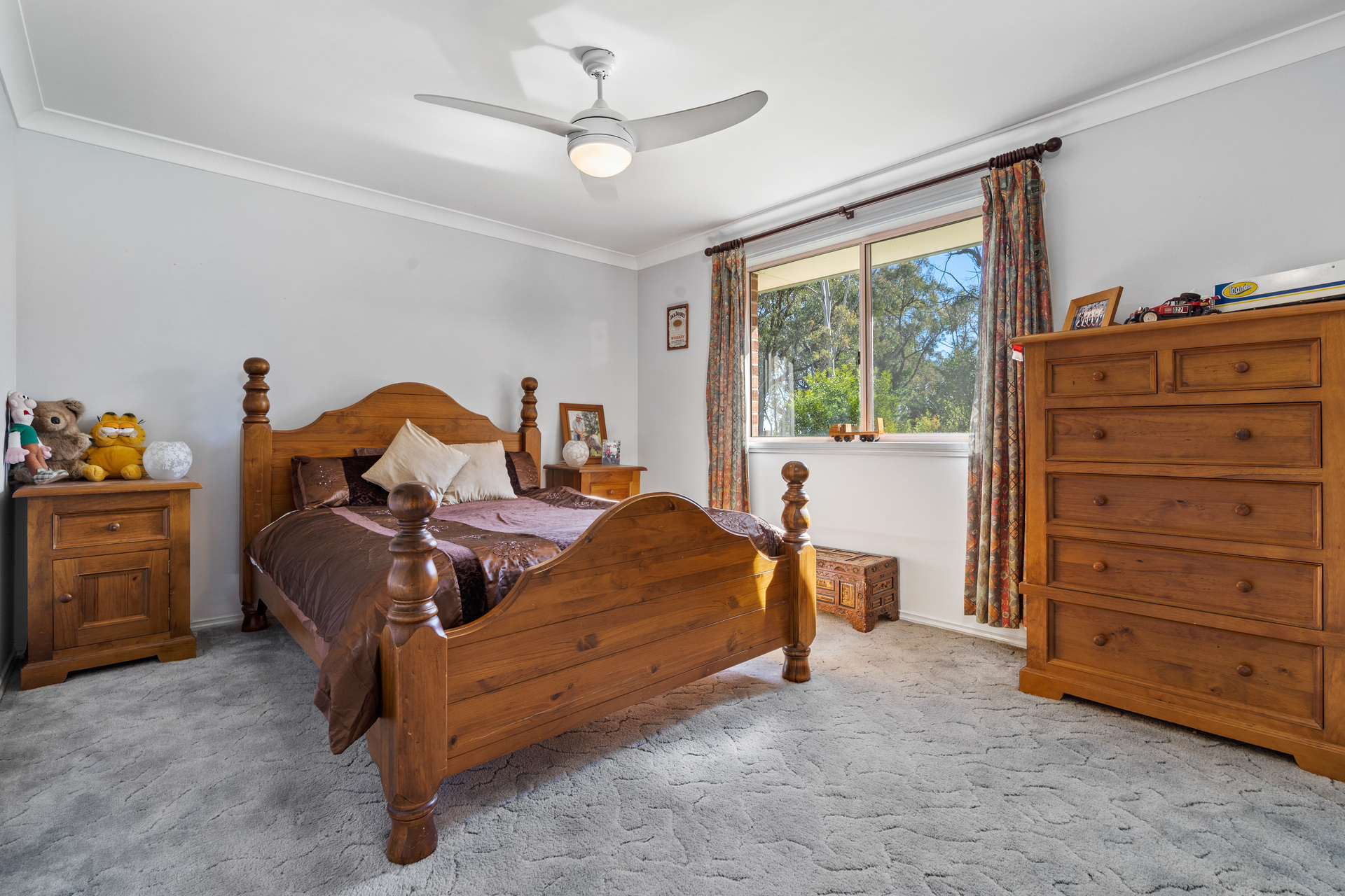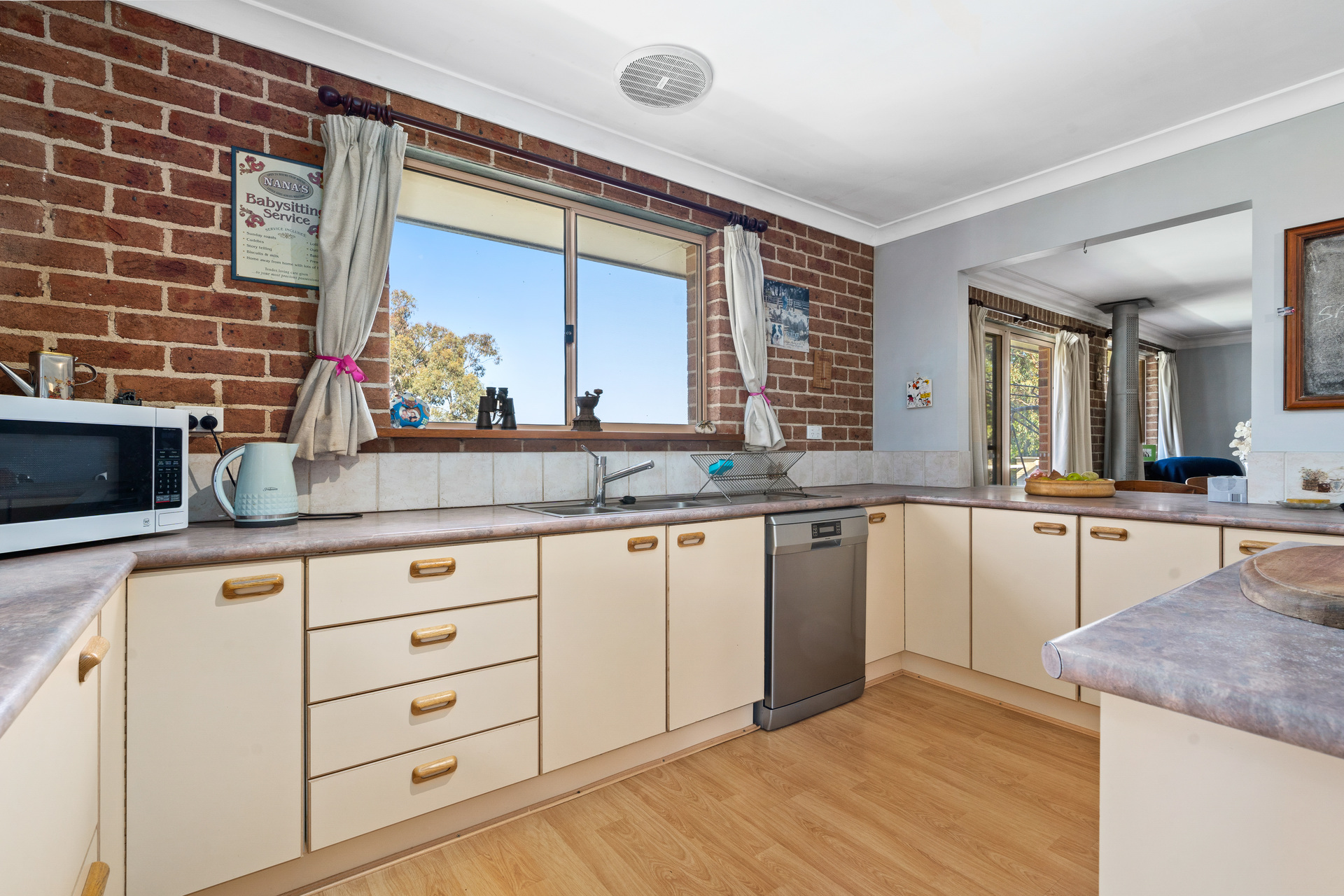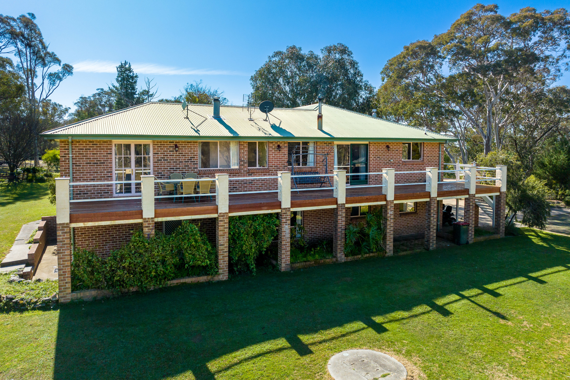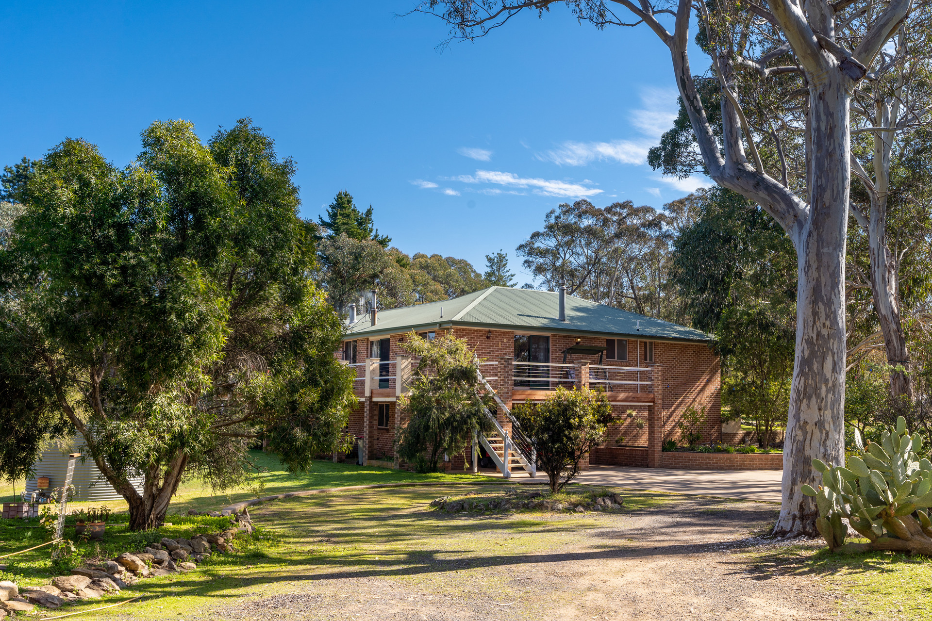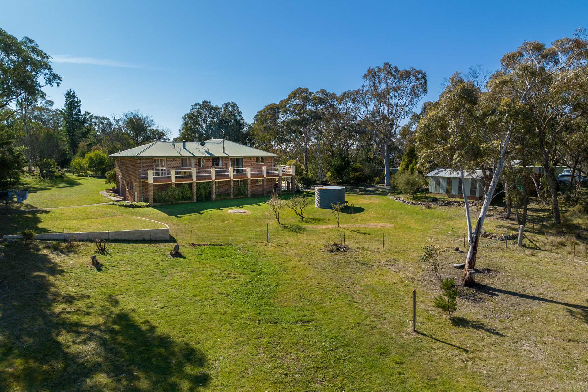 bedrooms all with built-ins and a secluded master suite with ensuite and walk-in wardrobe, a dedicated office and each floor provides ample space for family time and entertaining with a living area both upstairs and down. There's a light-filled family sized kitchen with a walk-in-pantry and a central island bench that connects to an open plan living and dining and then continues onto an entertainer's deck where you can enjoy endless and spectacular views of the surrounding landscape. Throughout the home you can enjoy the comforts of split-system heating and cooling, ceiling fans and two free-standing wood fireplaces. The land is a blend of grazing paddocks and bushland which is fully fenced and supported by two dams and a bore. For those that love the land and the outdoors there are multiple sheds and bird enclosures, plus an attached double bay garage that can accommodate vehicles and livestock required for cultivating a thriving property.
